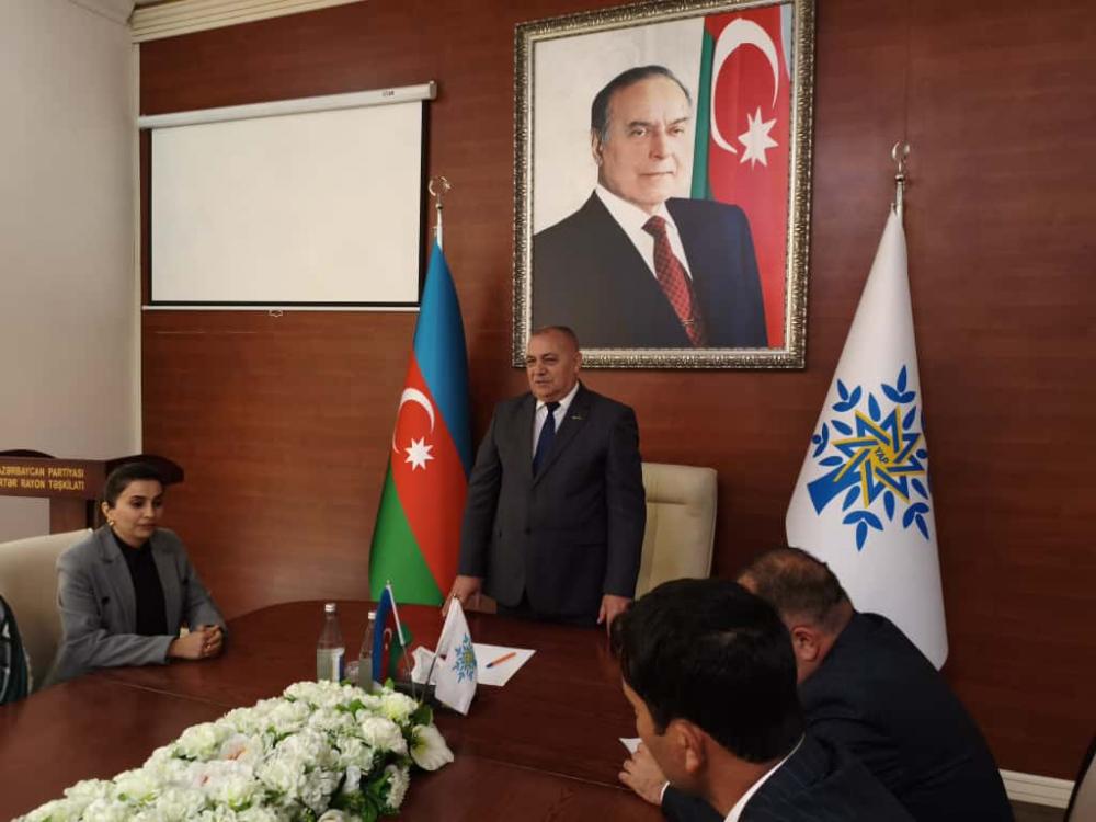 YAP Tərtər rayon təşkilatının qərargahında keçirilən görüşdə əvvəlcə Yeni Azərbaycan Partiyasının yaradıcısı Ümummilli Lider Heydər Əliyevin və torpaqlarımızın suverenliyi uğrunda canlarından keçmiş şəhidlərin ruhu bir dəqiqəlik sükutla yad edilib.