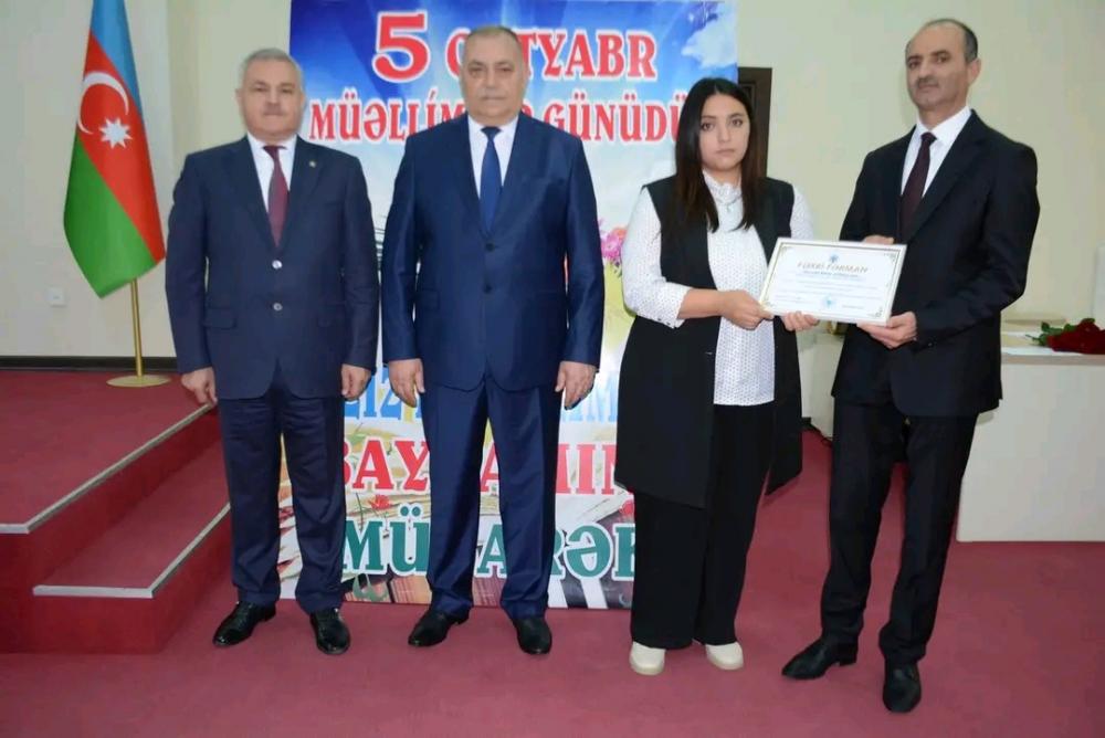Rayon icra hakimiyyətinin başçısı Müstəqim Məmmədov 5 oktyabr - Beynəlxalq Müəllimlər Günü münasibəti ilə onları təbrik edərək, şərəfli işlərində və gələcək fəaliyyətlərində uğurlar diləyib. Bildirib ki, bu il müəllimlərimiz “Konstitusiya və Suverenlik İli”ndə daha qürurla öz bayramlarını qeyd edirlər. Çünki artıq Vətənimiz olan Azərbaycanın bütün guşələrində üçrəngli Azərbaycan Bayrağı dalğalanır.