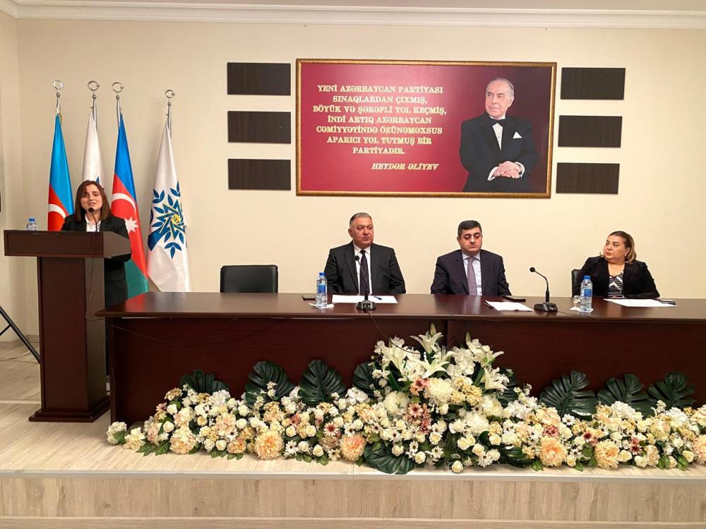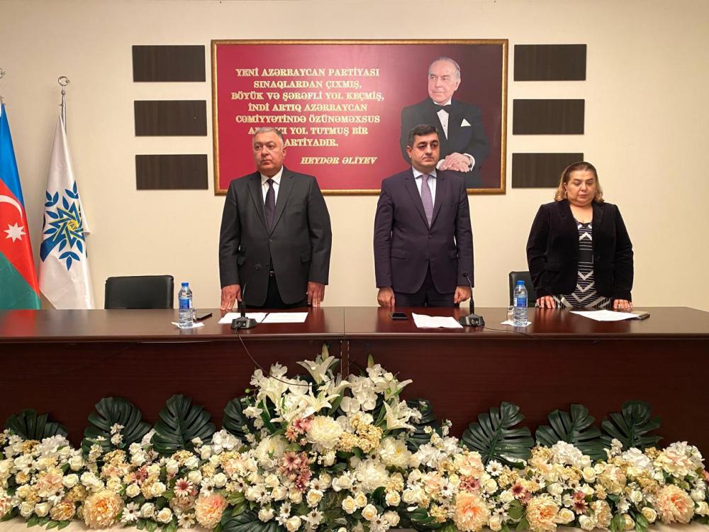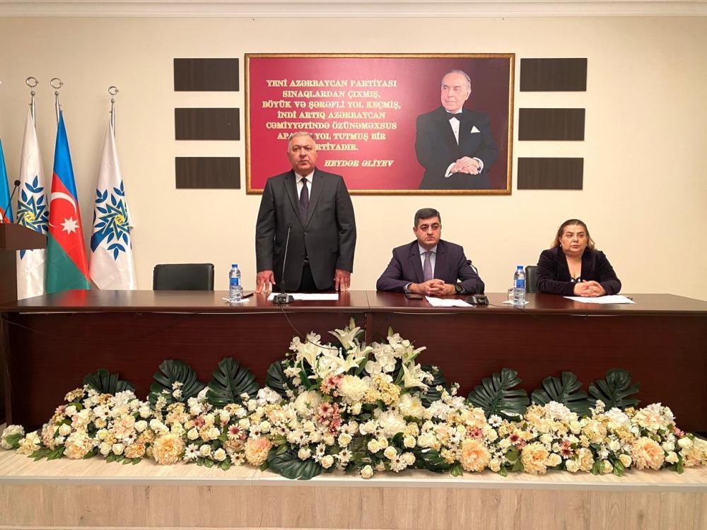YAP Xəzər rayon təşkilatının inzibati binasında təşkil olunan tədbirdə ilk öncə qonaqlar Ulu öndər Heydər Əliyevin əziz xatirəsini yad edərək, abidəsi önünə güllər düzüblər. Akt zalında davam edən görüşdə Azərbaycan Respublikasının Dövlət Himni səsləndirilmiş, ulu öndər Heydər Əliyev və Vətənimizin ərazi bütövlüyü uğrunda canlarından keçən şəhidlərimizin əziz xatirəsi bir dəqiqəlik sükütla yad edilmişdir.