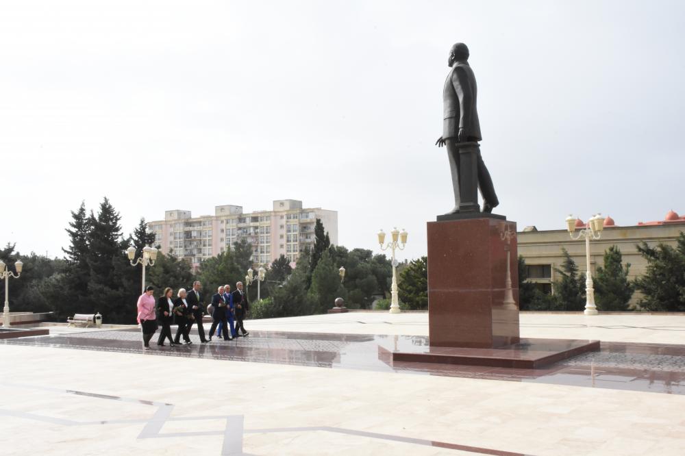 Tədbir iştirakçıları əvvəlcə Ulu öndər Heydər Əliyevin Mərkəzin qarşısında yerləşən abidəsi önünə gül dəsətələri düzərək əziz xatirəsinə dərin ehtiramlarını bildiriblər.