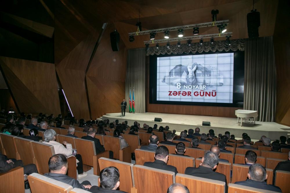 Açılış nitqi ilə çıxış edən Şəmkir Rayon İcra Hakimiyyətinin başçısı Rəşad Tağıyev 8 Noyabr - Zəfər Günü münasibətilə şəmkirliləri səmimi qəlbdən təbrik edərək Azərbaycan tarixinə qızıl hərflərlə yazılmış Şanlı Azərbaycan ordusunun qazandığı Zəfər tarixindən danışdı. Qəhrəman hərbçilərimizin şücaəti, rəşadəti hesabına, şəhidlərimizin qanı-canı bahasına bütün dünya Azərbaycanın şanlı qələbəsinin şahidi oldu. Azərbaycan Ordusu öz qəhrəmanlığı və peşəkarlığı ilə təkcə Ermənistanın silahlı qüvvələrini məhv etməyib, o, Erməni mifini də məhv etdi. Cəmi 44 gün ərzində Ermənistan ordusu, hərbi texnikası, canlı qüvvəsi məhv edildi və Azərbaycan öz gücünü, öz qüdrətini göstərdi.