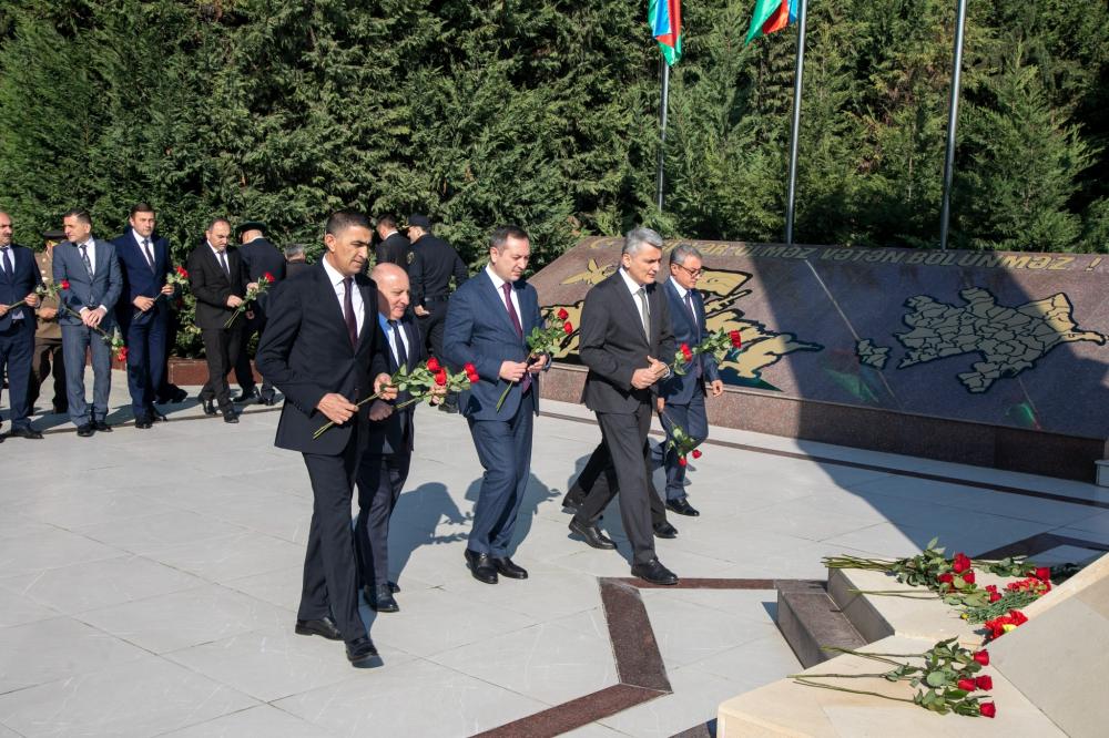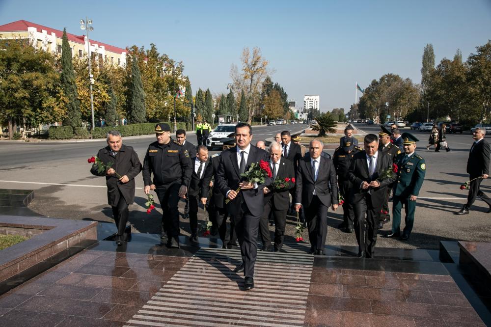 Şəmkir Rayon İcra Hakimiyyətinin başçısı Rəşad Tağıyev, Yeni Azərbaycan Partiyası Şəmkir rayon təşkilatının sədri Fəxrəddin Vəliyev, rayonun hüquq mühafizə orqanlarının rəhbərləri əvvəlcə Ulu Öndər Heydər Əliyevin abidəsini və Şəhidlər Memorial Abidə Kompleksini ziyarət edib, önünə gül dəstləri düzdülər.