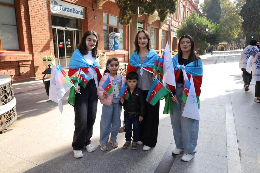 Şəhərin Cavad xan küçəsində əllərində üçrəngli bayraqlar yürüşə davam edən gənclər şəhər sakinlərinə yaxınlaşaraq bayraqlar verib, balacaların üzlərinə boyalarla Azərbaycan bayrağını və ay-ulduz şəkillərini çəkiblər. Yürüş boyu sayı artan gənclər böyük əhval-ruhiyyə ilə həmyaşıdlarını yürüşə qoşulmağa, həmrəy olmağa çağırıblar.