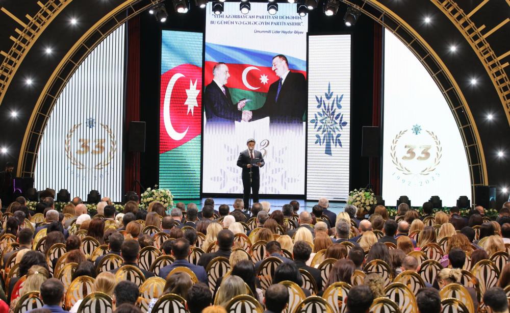 Diqqətə çatdırılıb ki, partiyanın keçdiyi 33 illik şərəfli yol xalq-iqtidar birliyinin möhkəm təmələ əsaslandığını, sarsılmaz və əbədi olduğunu təsdiqləyib. Bu gün sürətlə inkişaf edən müstəqil dövlətimizi uğurlu inkişafa aparan bu yolda hər bir Azərbaycan vətəndaşı Yeni Azərbaycan Partiyasının Sədri, Prezident İlham Əliyevin siyasi kursunu dəstəkləyir və böyük əzmlə dövlətin, xalqın, vətənin mənafeyi naminə səy göstərir.