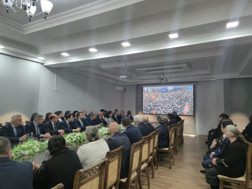 Tədbirdə ilk öncə Ulu Öndər Heydər Əliyevin və Azərbaycanın ərazi bütövlüyü uğrunda canlarını qurban vermiş şəhidlərimizin əziz xatirəsi bir dəqiqəlik sükutla yad edilib. Sonra Azərbaycan Respublikasının Dövlət Himni səsləndirilib.