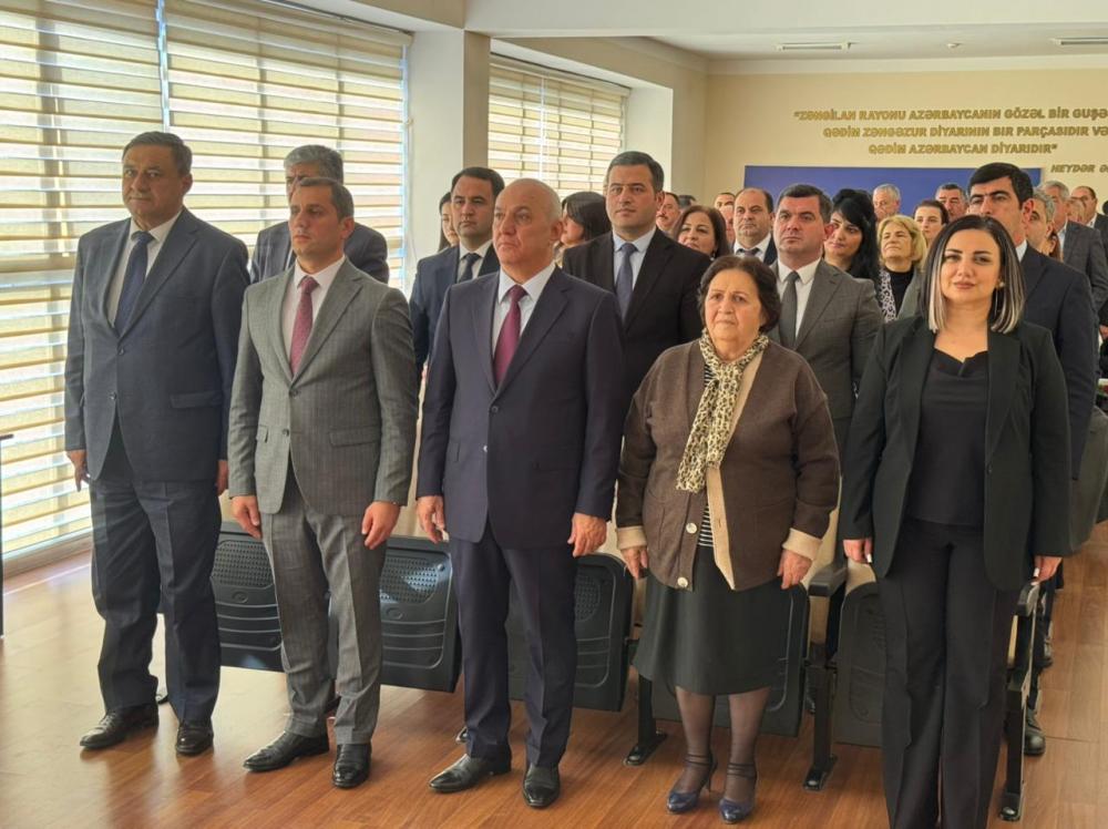 Zəngilan Rayon İcra Hakimiyyətinin başçısı Ramiz Həsənov çıxışında tədbir iştirakçılarını Yeni Azərbaycan Partiyasının yaradılmasının 33-cü ildönümü münasibətilə təbrik edib. O, vurğulayıb ki, “Ümummilli Lider Heydər Əliyev müasir Azərbaycanın inkişaf strategiyasının müəllifidir. Ulu Öndər Heydər Əliyevin siyasi varisi, Prezident İlham Əliyevin rəhbərliyi ilə həyata keçirilən məqsədyönlü siyasət nəticəsində Azərbaycan qüdrətli və qalib ölkəyə çevrilib. Vətən müharibəsində 30 illik işğala son qoyulması Prezident, Müzəffər Ali Baş Komandan İlham Əliyevin qətiyyətinin, Azərbaycan Ordusunun gücünün və qüdrətinin ifadəsidir”.