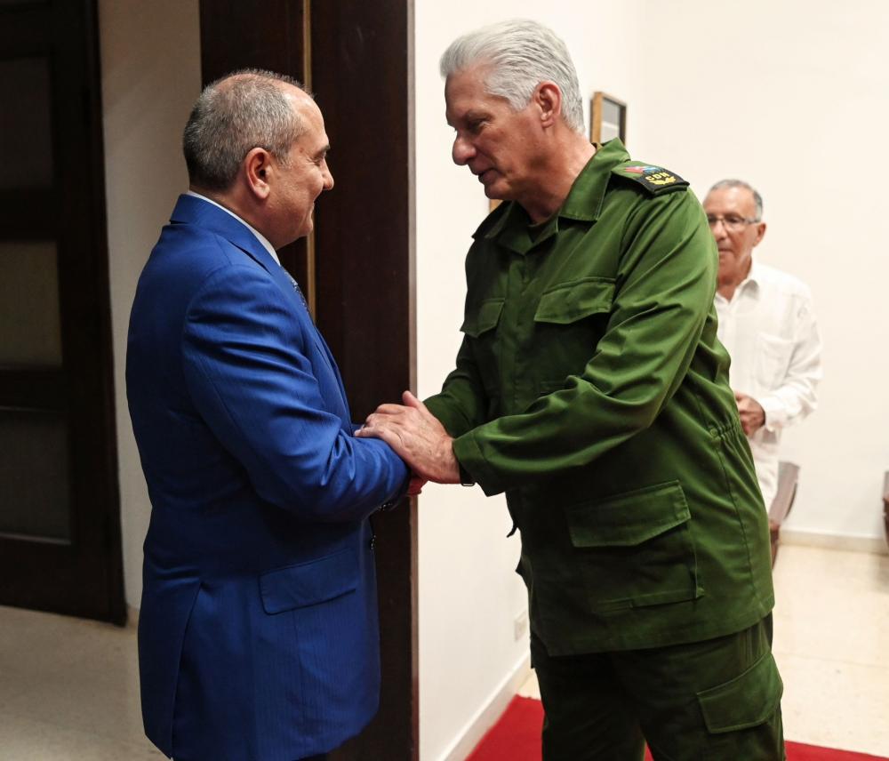 Kuba Kommunist Partiyasının (KKP) dəvəti əsasında baş tutan səfər çərçivəsində Kuba Kommunist Partiyası Mərkəzi Komitəsinin Birinci katibi, Kuba Respublikasının Prezidenti Miqel Mario Dias-Kanel Bermudes nümayəndə heyətini qəbul edib.