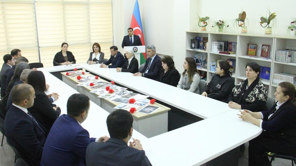 Öncə tədbir iştirakçıları, Heydər Əliyev Mərkəzində Ulu Öndərin həyat və fəaliyyətini əks etdirən stendlərə və Xocalıya həsr olunmuş kitablara baxış keçiriblər.