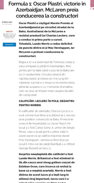 Rumıniya mediası Formula 1 Azərbaycan Qran-Prisini geniş işıqlandırıb