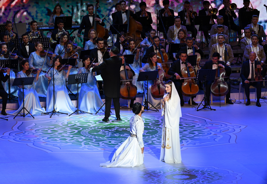 AZƏRTAC xəbər verir ki, Azərbaycan Respublikasının Prezidenti İlham Əliyev, birinci xanım Mehriban Əliyeva, qızları Leyla Əliyeva və Özbəkistan Respublikasının Prezidenti Şavkat Mirziyoyev, xanımı Ziroatxon Mirziyoyeva, qızları Saida Mirziyoyeva konsertdə iştirak ediblər.