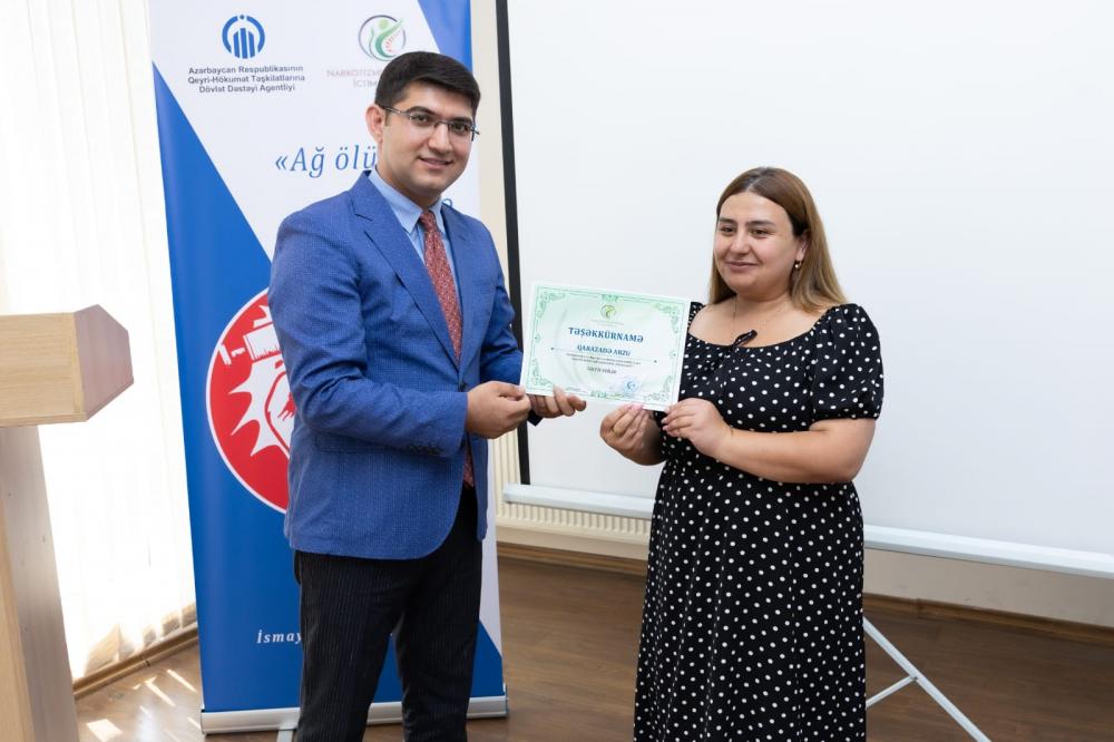 Növbəti maarifləndirici tədbirini 23 avqust 2024-cü ildə Bakı şəhəri, Xəzər rayon Gənclər evi sosial xidmət müəssisəsində həyata keçirən Narkorizmlə Mübarizə İctimai Birliyinin direktoru, layihənin kordinatoru Kənan Qubadzadə tədbirdə bildirib ki, “Layihənin müddəti 3 aydır və əsas məqsədi maarifləndirici tədbirlər, hazırladığı sosial çarxın sosial platformalar və media vasitəsi ilə cəmiyyəti "ağ ölüm"dən-narkomaniya bəlasından qorunması yönündə işlər görməkdir. Layihə çərçivəsində hazırlanan Sosial çarx 5 dəqiqə ərzində həm səsli həmdə ssenari əsasında teatral hərəkətlərlə gəncləri, valideyinləri məsuliyyətli, narkotikdən və digər pis vərdişlərdən uzaq olmağa çağırır. Sosial çarx mediada yayımlanacq, youtube-də və digər sosial şəbəkələrdə paylaşılacaqdır”. Tədbirdə iştirak edən Gənclər evinin icraçı direktoru Gündüz Vəliyev, psixoloq Aynur Bünyatova və Elnarə Eyyubova çıxışlarında bildirdilər ki, narkomaniya ümumbəşəri bir problem olaraq günümüzə qədər gəlib çıxan ən böyük problemlərdən biridir. Bu mübarizə dövlət qurumları, hüquq mühafizə orqanları, o cümlədən vətəndaş cəmiyyəti institutları tərəfindən həyata keçirilir. Narkomaniyaya qarşı mübarizədə maarifləndirmə tədbirlərini daha səmərəli qurmaq üçün Qeyri-Hökumət Təşkilatlarına Dövlət Dəstəyi Agentliyi tərəfindən müvafiq qrant layihələri təqdim olunur. Bu baxımdan, deyə bilərik ki, narkomaniya ilə mübarizə dövlətin prioritet məsələsidir. Aparılan araşdırmalar isə onu deməyə əsas verir ki, atılan addımlara baxmayaraq bu gün problemdən əziyyət çəkənlərin sayı durmadan artır. Əsasən gənc nəsil arasında yayılan narkomaniya onların həyat və fəaliyyətinə ciddi təsir göstərir. Eyni zamanda, sağlamlıqlarında ciddi problem yaradır ki, bu da normal ailə modelinin inkişafına, sağlam gələcək nəsil yetişməsinə ciddi əngəllər törədir. Narkotizmlə mübarizədə bütövlükdə cəmiyyətin, dövlətin, xalqın, nəhayət hər bir şəxsin fərdi və birgə fəaliyyətinə, barışmaz münasibətinə və əməli köməyinə böyük ehtiyac vardır. Bütün bu kimi halların qarşısını almaq üçün narkomaniyaya qarşı mübarizə sahəsində davamlı addımların atılması zərurətə çevrilib. Tədbir ərəfəsində rayonda gənclər arasında narkomaniyaya qarşı mübarizə tədbirlərini və maarifləndirmə işinə dəstək verən Gənclər evinin icraçı direktoru Gündüz Vəliyevə və mərkəzin əməkdaşı Arzu Qarazadəyə təşəkkürnamələr təqdim edildi.