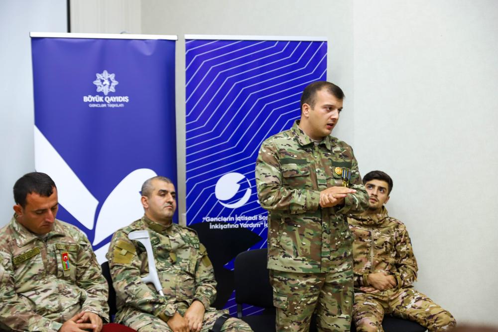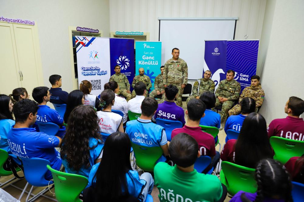 Daha sonra Azərbaycan Könüllüləri, Azərbaycan Könüllü Təşkilatları İttifaqının təşkilatçılığı, “Gənc Könüllülər” İctimai Birliyi və “Böyük Qayıdış” Gənclər Təşkilatının birgə tərəfdaşlığı ilə 44 günlük Vətən müharibəsində iştirak etmiş döyüşçü qazilərlə görüşüb. Qəhrəman qazilərimiz 44 günlük Vətən müharibəsində cənab Prezident, Müzəffər Ali Baş Komandan İlham Əliyevin rəhbərliyi altında Azərbaycan Ordusunun döyüş meydanında əldə etdiyi şanlı Zəfərdən, müharibə ilə bağlı xatirələrindən, göstərdikləri igidliklərdən bəhs ediblər.