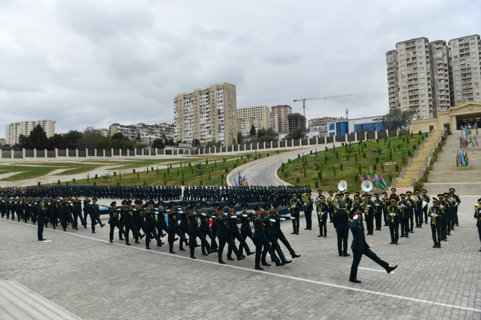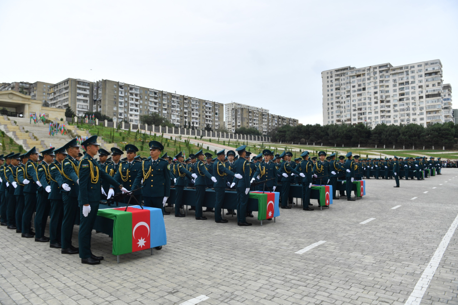 Kursant İbrahim İbrahimov gənc kursantlar adından çıxış edərək şəhidlərimizin qanı və canı bahasına azad olunmuş torpaqlarımızda şərəflə xidmət edəcəklərinə, üçrəngli bayrağımızın dalğalandığı bütöv Azərbaycanın AZƏhüdudlarında dövlət maraqlarını ən yüksək səviyyədə qoruyacaqlarına söz verib.