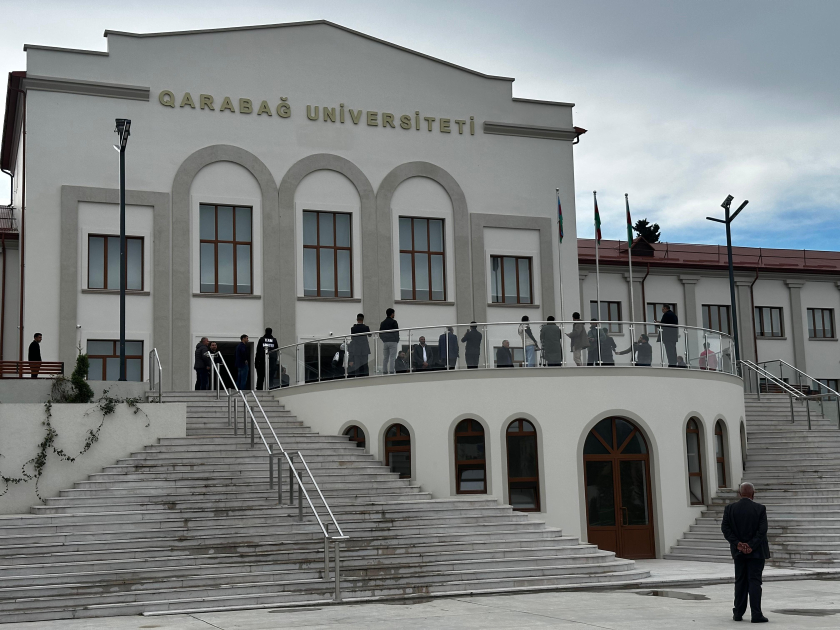 Qonaqlar, həmçinin Qarabağ Universitetinə gəlib, burada yaradılan şəraitlə tanış olub, tələbələrlə görüşüblər. Bildirilib ki, Dövlət Suverenliyi Günündə fəaliyyətə başlayan Qarabağ Universiteti Azərbaycanın davamlı və gələcək inkişafının təminatçısına çevriləcək kadrların hazırlanmasını, gənclərimizin ixtisaslaşmasını uğurla həyata keçirəcək. 2024/2025-ci tədris ili üzrə Qarabağ Universitetinə 1104 nəfər qəbul olub və qəbul planı 98,5 faiz dolub. Universitetə qəbul olan tələbələrdən 101 nəfəri 600-dən, 385 nəfəri isə 500-dən çox bal toplayıb. Ən yüksək nəticə 683,8 balla hüquqşünaslıq ixtisası üzrə qeydə alınıb. Olimpiada qalibi olan bir abituriyent universitetin elektrik və elektronika mühəndisliyi ixtisasına müsabiqədənkənar qəbul edilib. Ümumilikdə, Qarabağ Universitetinə I-IV ixtisas qrupları üzrə orta qəbul balı 467,6 olub.