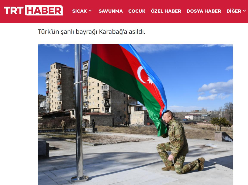 “Bu gün Azərbaycanın işğaldan azad edilmiş torpaqlarında çoxsaylı infrastruktur layihələri reallaşdırılır, “ağıllı şəhərlər”in qurulması konsepsiyası həyata keçirilir, sənaye və kənd təsərrüfatı sahələri dirçəldilir. Son 4 ildə bu məqsədlər üçün təxminən 7 milyard dollar ayrılıb”, - deyə “TRT Haber” bildirir.
