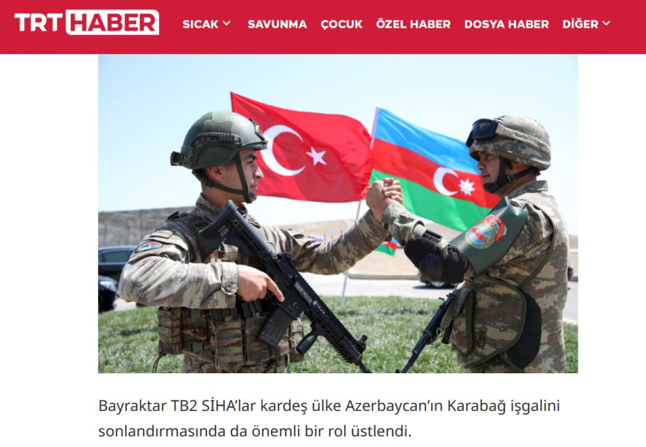 “Müharibənin ilk günlərindən Türkiyə qardaş Azərbaycanın yanında olub, Azərbaycan xalqının ədalətli mübarizəsinə güclü dəstəyini bəyan edib”, - deyə Türkiyə Prezidenti Rəcəb Tayyib Ərdoğanın “Azərbaycan mübarizəsində tək deyil!” sözləri sitat gətirilən reportajda daha sonra bildirilir.