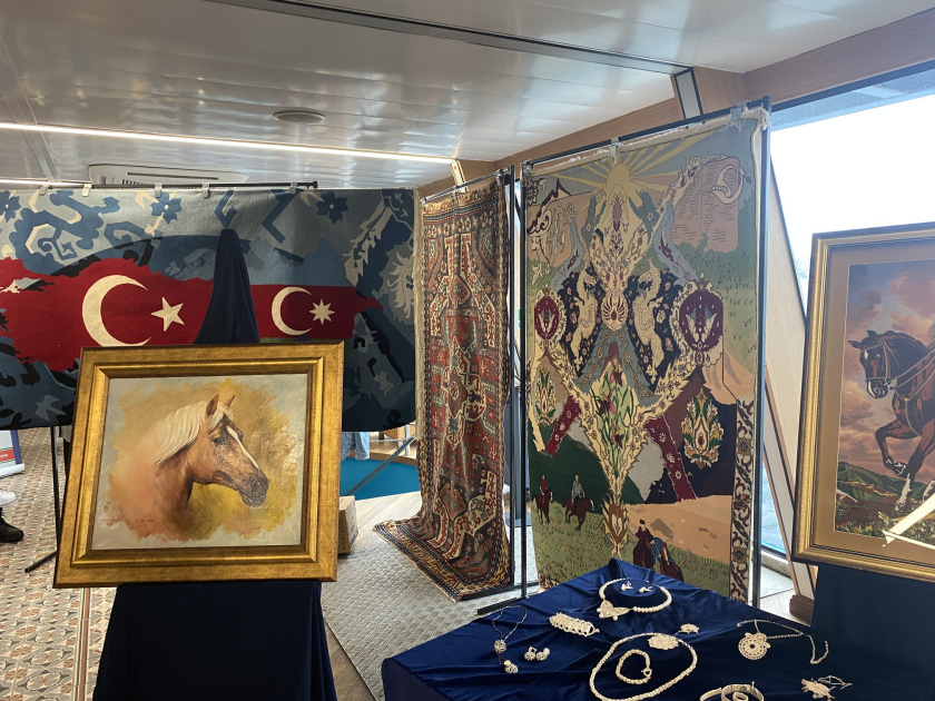 Tədbirdə Rəssamlar İttifaqının üzvləri, Azərbaycanın xalq yaradıcılığı üzrə mütəxəssis Elnarə Rəsulovanın ideya müəllifi olduğu əsərlər, o cümlədən dünyanın məşhur muzeylərində saxlanılan, Azərbaycanın 7 bölgəsinə aid qədim xalçaların replikaları, eləcə də sənətkara məxsus Qarabağ Zəfərinə həsr edilmiş “Ata vəsiyyəti, oğul Zəfəri”, “Dəmir Yumruq”, “Laçın zirvəsi”, Azərbaycan-Türkiyə qardaşlığına həsr edilmiş “Bir millət, iki dövlət… tək yumruq”, “Soyumuz bir, dinimiz bir..” mövzusunda xalçaları, teatr birliyi sədrinin müavini Lətafət Rəfiq, Türkiyə-Azərbaycan Vizyon Teatrının rəssamı Taryel Əlizadə, eləcə də əl işləri sənətçisi Fatimə Abdalın əsərləri nümayiş etdirilib.