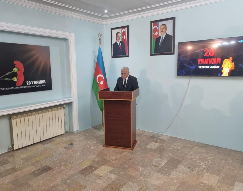 AZƏRTAC xəbər verir ki, tədbir zamanı 20 Yanvar faciəsinə həsr edilmiş sənədli film nümayiş etdirilib, fotoşəkillərdən ibarət sərgi keçirilib və ehsan süfrəsi açılıb.
