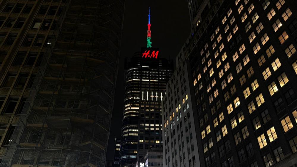 / / Nyu-Yorkda Tayms meydanındakı ən hündür göydələn Azərbaycan bayrağının rəngləri ilə işıqlandırılıb