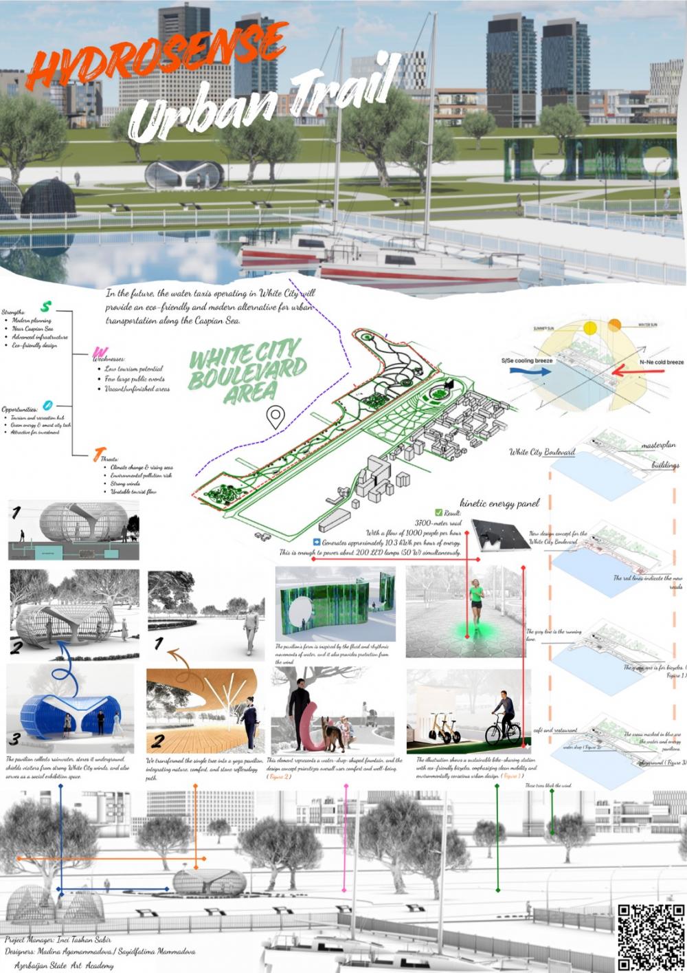 “Memarlıq” ixtisasında təhsil alan tələbələr Baku White City kontekstində su resurslarının idarə olunması və ekoloji davamlılıq mövzusunda konseptual layihələr hazırlamış, işlər iki mərhələli beynəlxalq qiymətləndirmə əsasında seçilmişdir. Final mərhələsində layihələr Böyük Britaniyadan olan 38 memar tərəfindən dəyərləndirilmişdir.