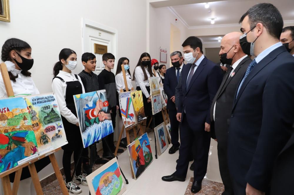 Neftçala Rayon İcra Hakimiyyətinin başçısı Mirhəsən Seyidov və “İrəli” İctimai Birliyinin sədri Şahin Rəhmanlı Neftçala rayon Camal İsmayılov adına Uşaq İncəsənət Məktəbi şagirdlərinin hazırladığı rəsm əsərləri ilə tanış olublar.