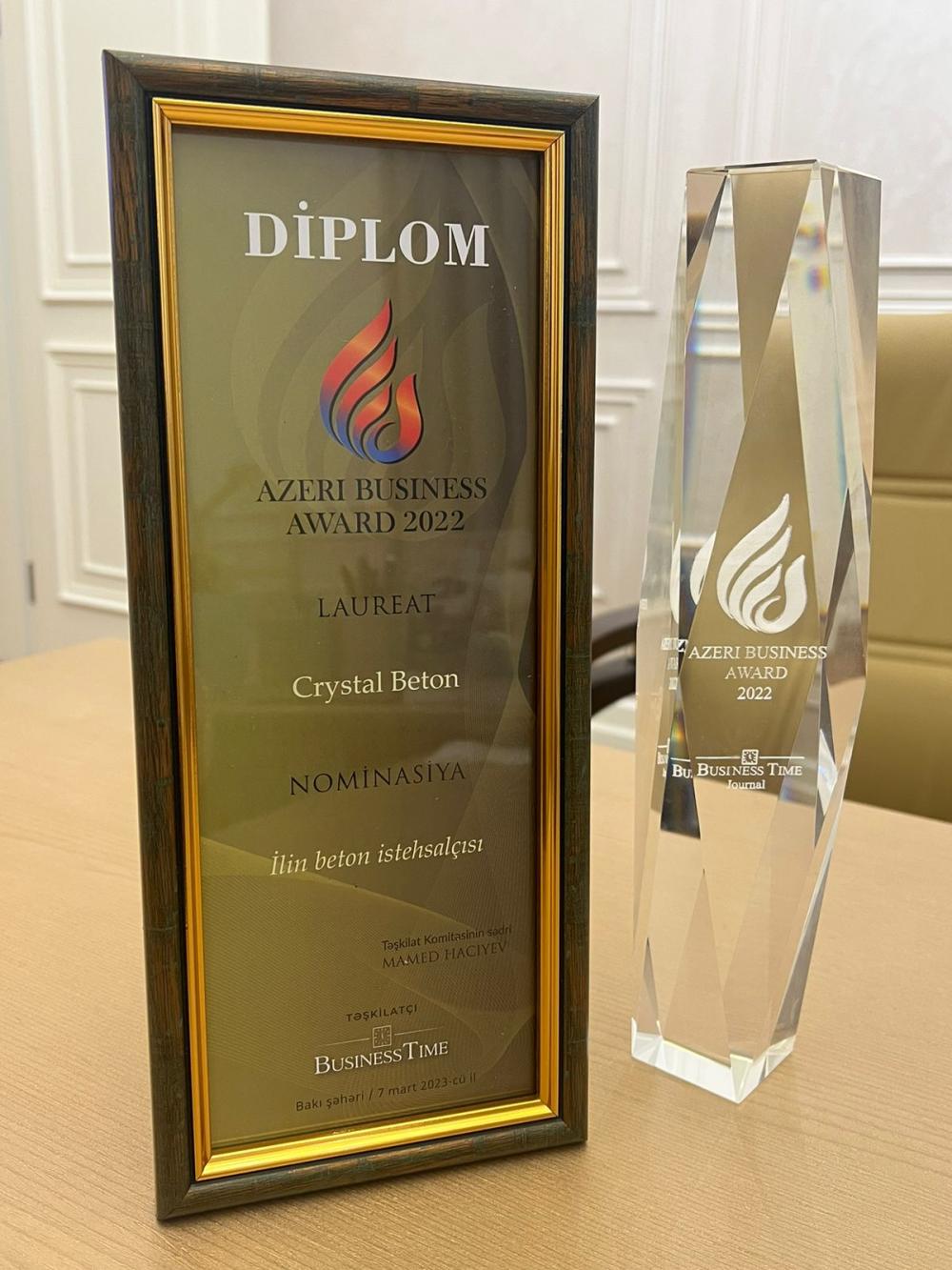 Tədbirdə təmsil edilən “Crystal Beton” Qapalı Səhmdar Cəmiyyəti təşkilatçılar tərəfindən İlin beton istehsalçısı adını qazanıb. Mükafatla təltif edilən şirkətin nümayəndəsi təşkilatçılara verdikləri dəstəyə görə öz təşəkkürünü bildirib və belə bir inam ifadə edib ki, zəngin təcrübəyə malik şirkət qarşıdakı illərdə daha böyük tikinti layihələrinə öz töhfəsini verəcəkdir.
