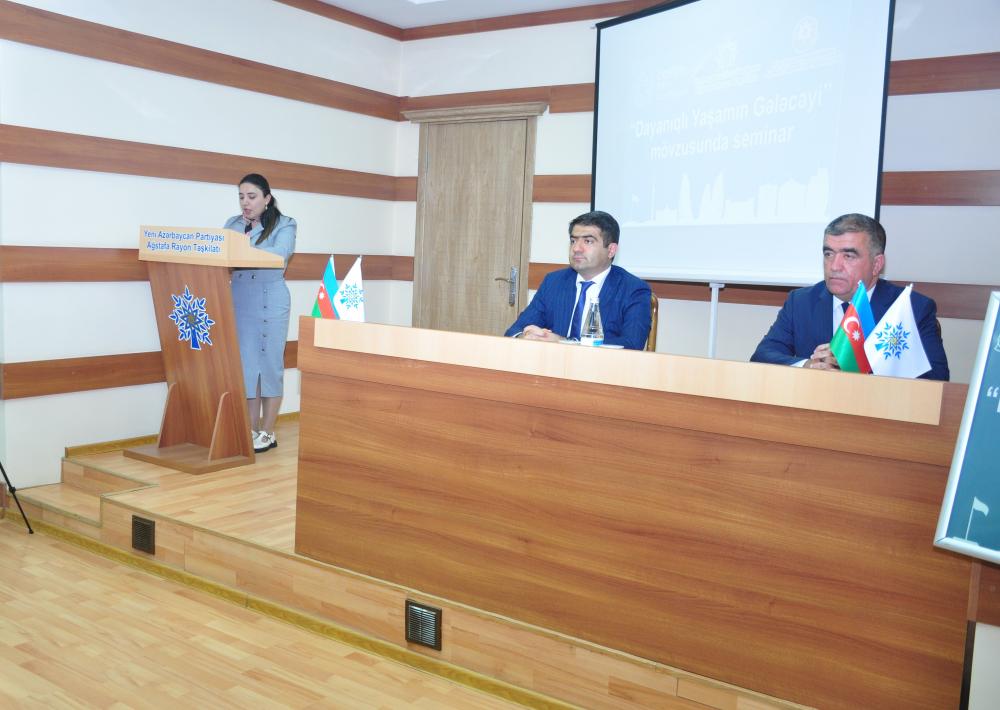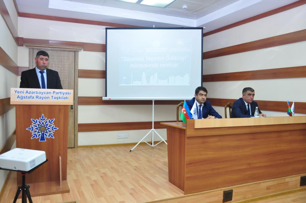 07 may 2024-cü il tarixində Yeni Azərbaycan Partiyası (YAP) Ağstafa rayon təşkilatının və Ağstafa Rayon İcra Hakimiyyətinin birgə təşkilatçılığı ilə “Yaşıl dünya naminə həmrəylik ili” çərçivəsində “Dayanıqlı Yaşamın Gələcəyi” mövzusunda tədbir keçirilib.