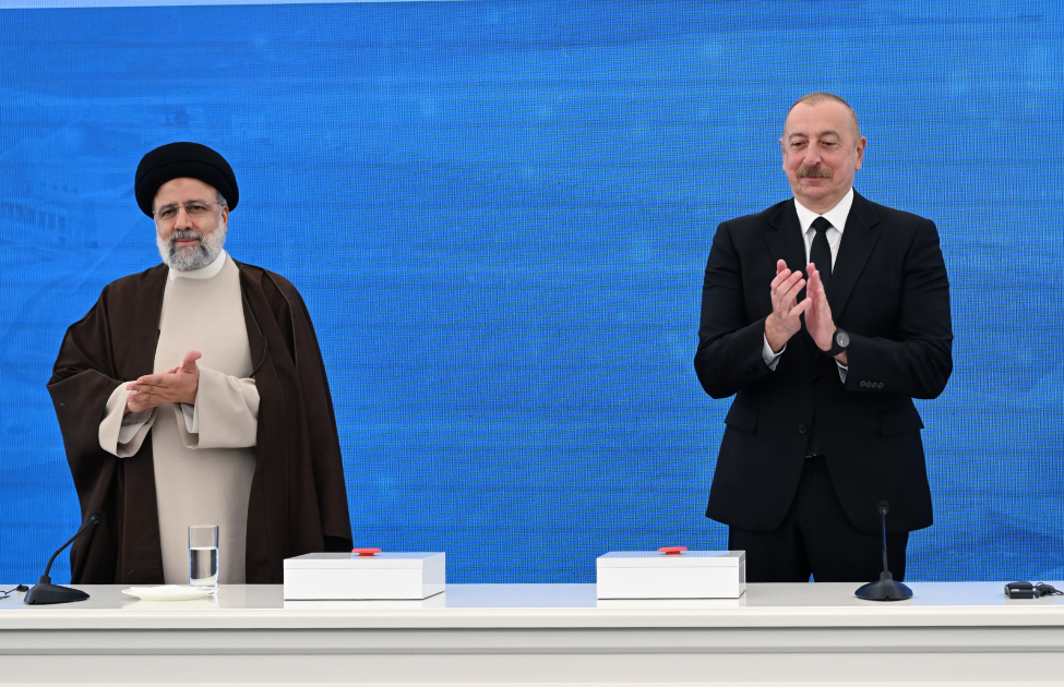 İran-Azərbaycan əlaqələrinin gələcək inkişafı da çox müsbətdir. Mən bu gün hörmətli Prezident Rəisini bu il Azərbaycanda keçiriləcək iqlim konfransına dəvət etmişəm. Hörmətli Prezident Rəisi məni İrana dəvət edib. Bu dəvətə görə təşəkkürümü bildirirəm. Əminəm, bizim bundan sonra da görüşlərimiz çox olacaq, son illər biz artıq beşinci dəfədir ki, görüşürük, amma sərhəddə ilk dəfədir. Bundan sonra da bu görüşlər olacaq. Bu görüşlərin həm mahiyyət üzrə çox böyük əhəmiyyəti var, həm də xalqlarımıza, bölgəyə və dünyaya ciddi mesajdır. İran-Azərbaycan birliyi, dostluğu sarsılmazdır. Heç kim bizim aramıza girə bilməz. Bu səylər əbəsdir və biz bugünkü mərasimlə bunu bir daha sübut edirik.