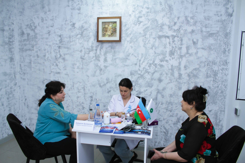 Tibbi xidmətlərdən qanda şəkər və arterial təzyiqin ölçülməsi, ilkin laborator analizlər, terapevt və endokrinoloq müayinələri həyata keçirilib.