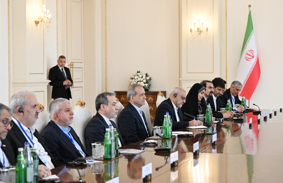 Azərbaycan Prezidenti İlham Əliyevin İran Prezidenti Məsud Pezeşkian ilə geniş tərkibdə görüşü olub