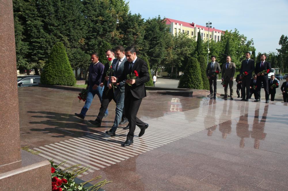 Şəmkir Rayon İcra Hakimiyyətinin başçısı Rəşad Tağıyev, YAP Şəmkir rayon təşkilatının sədri Fəxrəddin Vəliyev, İcra Hakimiyyətinin, YAP rayon təşkilatının əməkdaşları, hüquq mühafizə orqanları, idarə, müəssisə və təşkilat rəhbərləri əvvəlcə Ulu Öndərin rayon mərkəzində yerləşən abidəsini ziyarət etdi, önünə tər çiçəklər düzdülər.