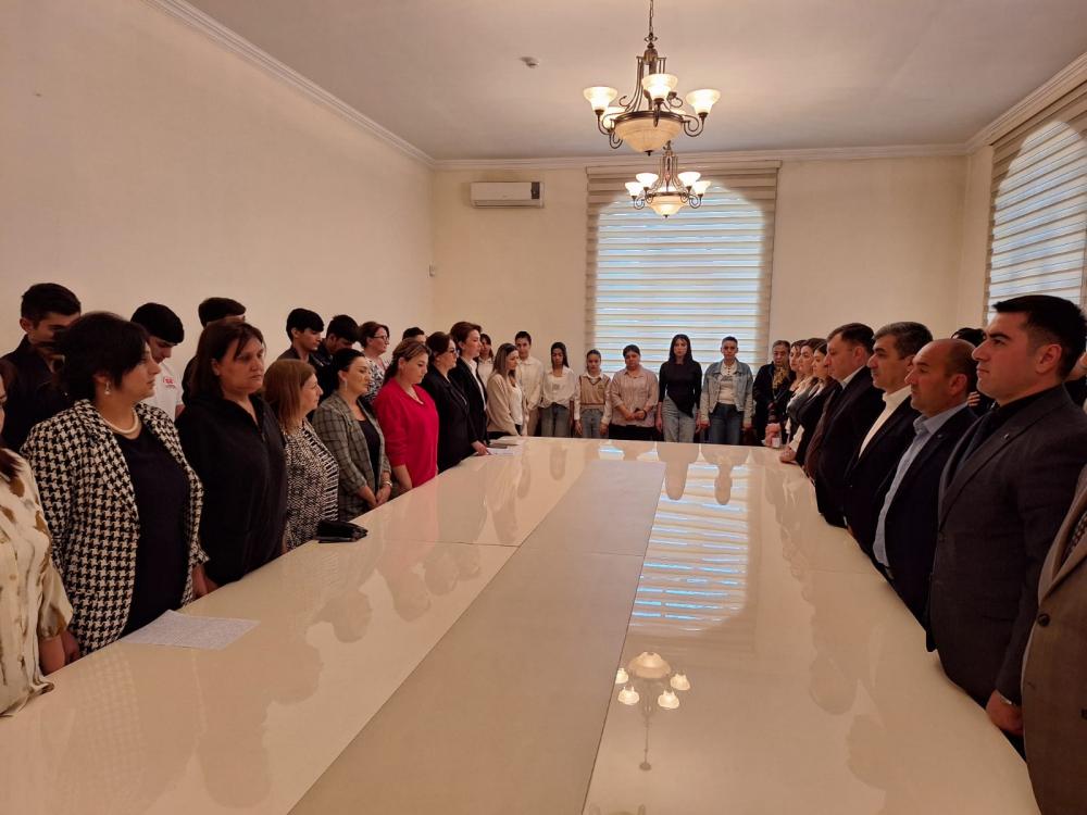 Tədbir Azərbaycan Respublikasının Dövlət Himninin səsləndirilməsi ilə başlandı, Ümummilli Lider Heydər Əliyevin və müqəddəs şəhidlərin əziz xatirəsi bir dəqiqəlik sükutla yad edildi.