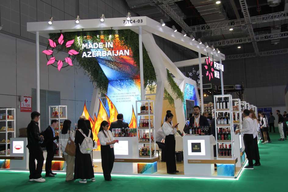 “Made in Azerbaijan” stendində isə sərgi ziyarətçilərinə Azərbaycan şirkətlərinin istehsal etdikləri şərab brendi və digər alkoqollu və alkoqolsuz içkilər, qənnadı məmulatları, fındıq, nar şirəsi, konservlər və s. məhsullar nümayiş olunur. Stenddə həmçinin Çindəki ticarət evlərində nümayiş olunan yerli məhsullarımız da yer alıb. Bundan başqa, xidmət ixracının dəstəklənməsi məqsədilə Xəzəryanı regionda qida sənayesi iştirakçılarının ən əsas görüş yerlərindən birinə çevrilən yerli “InterFood Azerbaijan” sərgisi haqqında məlumat verilir və xarici şirkətlərin sözügedən sərgidə təmsil olunması təşviq olunur.