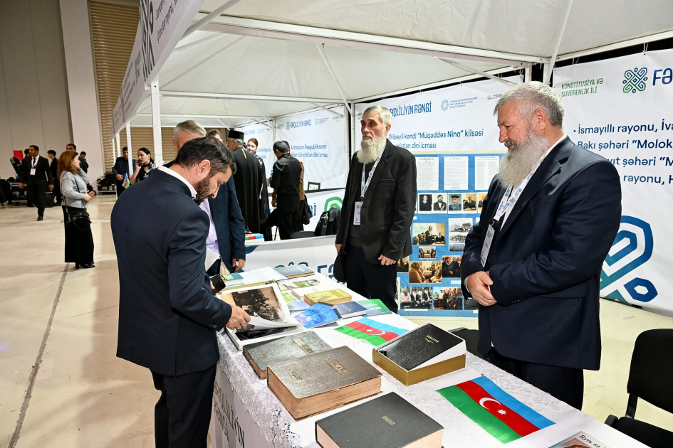 Festivalda dini icmaların kitabları, geyimləri, adət-ənənələri və s. əlaqədar nümunələr nümayiş etdirilib.