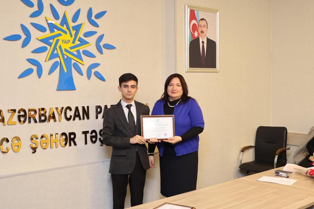 Sonda bir qrup könüllü gəncə “Təşəkkürnamə” və hədiyyə təqdim edilib.