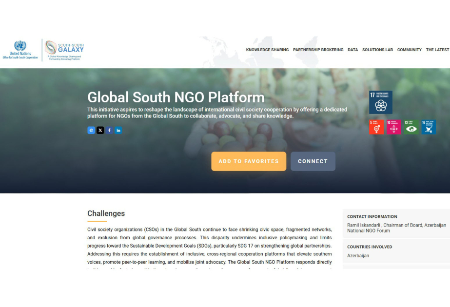 Qlobal Cənub QHT Platforması (GSNP) son illərin ən inklüziv vətəndaş cəmiyyəti səfərbərliklərindən biri kimi qiymətləndirilib. Bu barədə BMT-nin Cənub-Cənub Əməkdaşlığı üzrə Ofisinin (UNOSSC) rəsmi saytında məlumat yerləşdirilib.