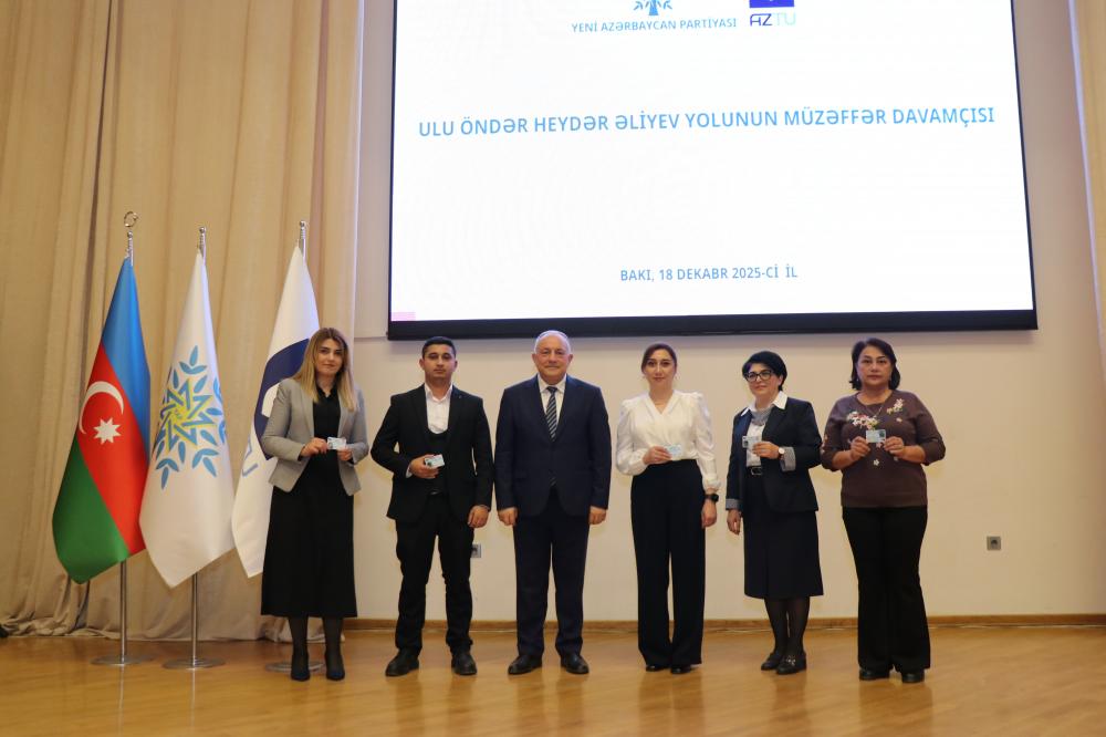 Tədbirdə Yeni Azərbaycan Partiyasının sıralarına yeni qəbul olunmuş Universitet əməkdaşlarına üzvlük vəsiqələri təqdim edilib.