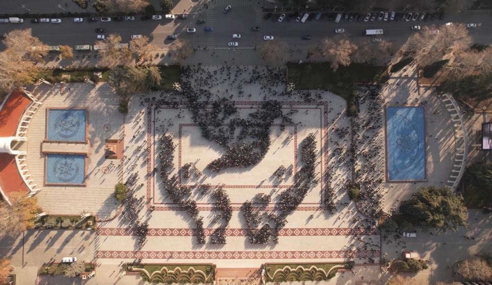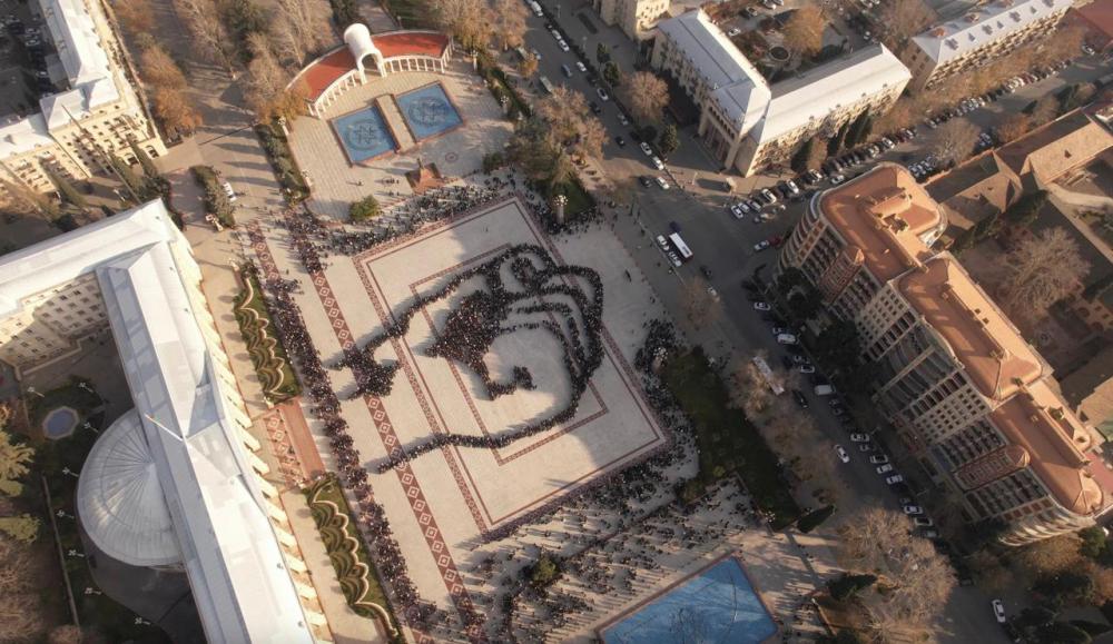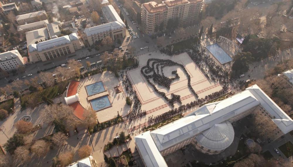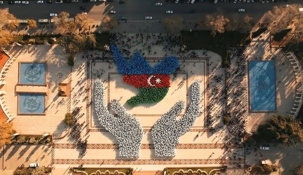 Vətənpərvərlik, birlik və sülh ideyalarının təbliği məqsədilə reallaşan fləşmobda gənclər Azərbaycan xalqının gücünü, həmrəyliyini və eyni zamanda sülhə sadiqliyini bu simvolik aksiya vasitəsilə nümayiş etdiriblər.