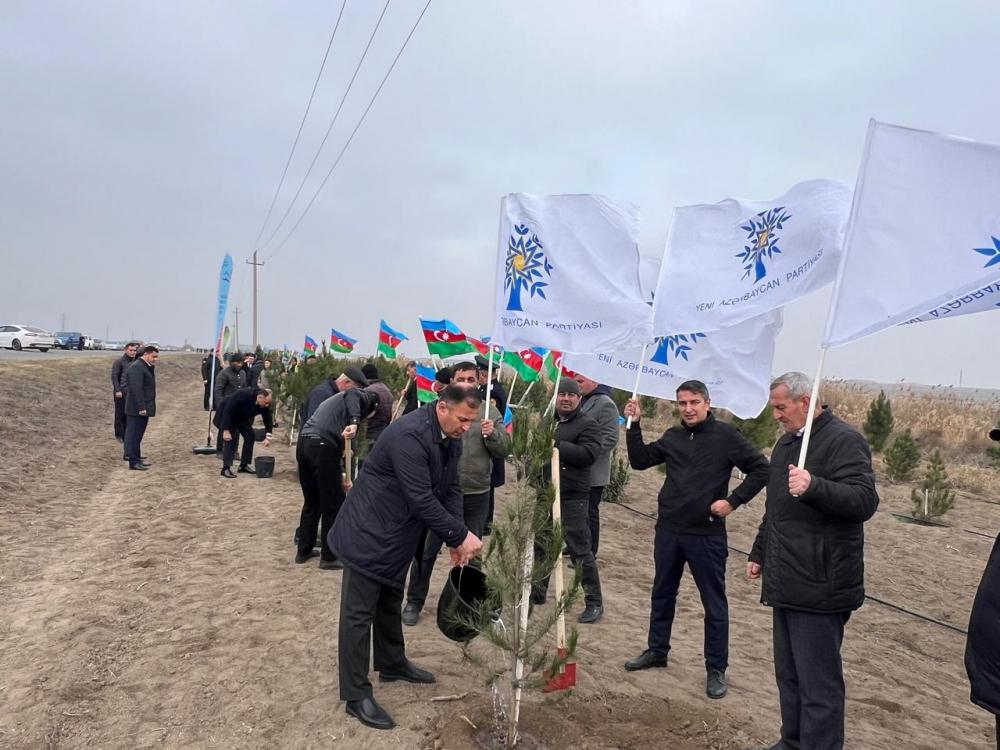 Aksiya çərçivəsində rayonun iqlim şəraitinə uyğun gələn 300 ədəd həmişəyaşıl ağaclar əkilib və yeni əkilmiş ağaclara da müasir damlama suvarma sistemi qurulub.