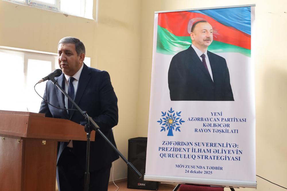 Yeni Azərbaycan Partiyası Kəlbəcər rayon təşkilatı tərəfindən 24 dekabr 2025-ci il tarixində “Konstitusiya və Suverenlik İli” çərçivəsində “Zəfərdən suverenliyə: Prezident İlham Əliyevin quruculuq strategiyası” mövzusunda tədbir keçirilib.