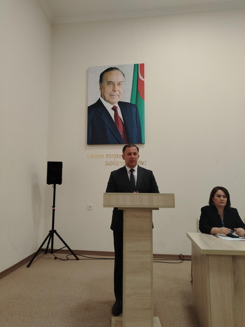 Çıxış edən ərazi partiya təşkilat sədrləri Elvin Quliyev, Şəfəq Alıyeva, Qələmkar Nəsibova müstəqil Azərbaycanın qurucusu, Yeni Azərbaycan Partiyasının yaradıcısı Ümummilli Lider Heydər Əliyevin misilsiz xidmətlərindən danışıb, dövlətçilik strategiyasının ölkə başçısı, Yeni Azərbaycan Partiyasının sədri cənab İlham Əliyev tərəfindən uğurla davam etdirildiyini diqqətə çatdırıblar.