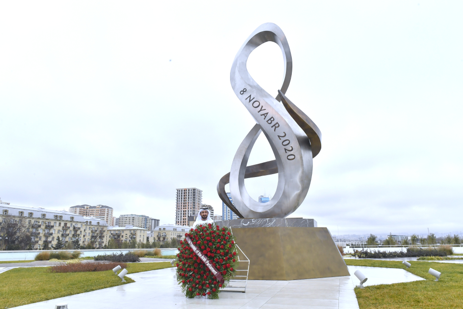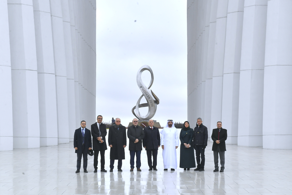 AZƏRTAC xəbər verir ki, səfər çərçivəsində nümayəndə heyəti Bakıda Zəfər parkını ziyarət edərək abidə önünə əklil qoyub.