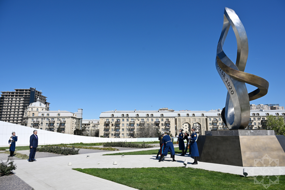 Ölkəmizdə səfərdə olan Qazaxıstan Respublikasının xarici işlər naziri Yermek Koşerbayev və nəqliyyat naziri Nurlan Sauranbayev aprelin 8-də Şəhidlər xiyabanını ziyarət ediblər.