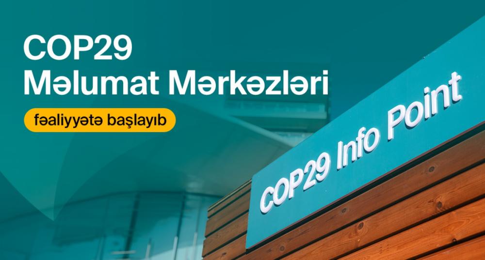 Noyabrın 11-dən 22-dək Bakıda keçiriləcək COP29 konfransında iştirak məqsədilə paytaxta səfər edəcək minlərlə ziyarətçini hərtərəfli məlumat dəstəyi ilə təmin etmək üçün COP29 Məlumat mərkəzləri fəaliyyətə başlayıb.