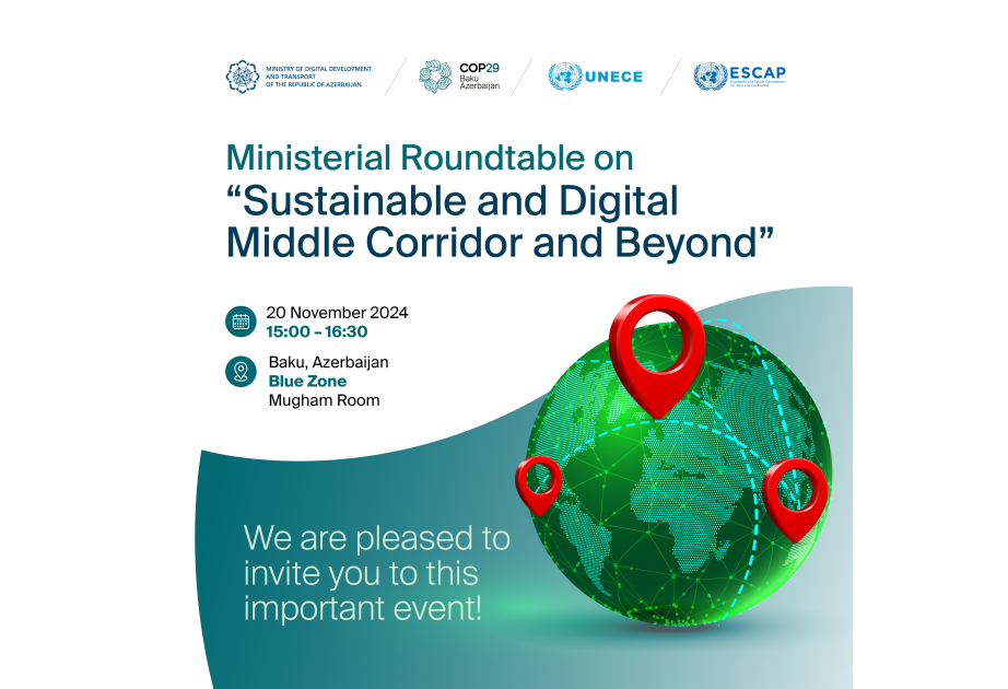 Noyabrın 20-də Bakıda COP29 çərçivəsində nazirlərin “Dayanıqlı, rəqəmsal Orta Dəhliz və onun hüdudlarından kənar” mövzusunda dəyirmi masası keçiriləcək.