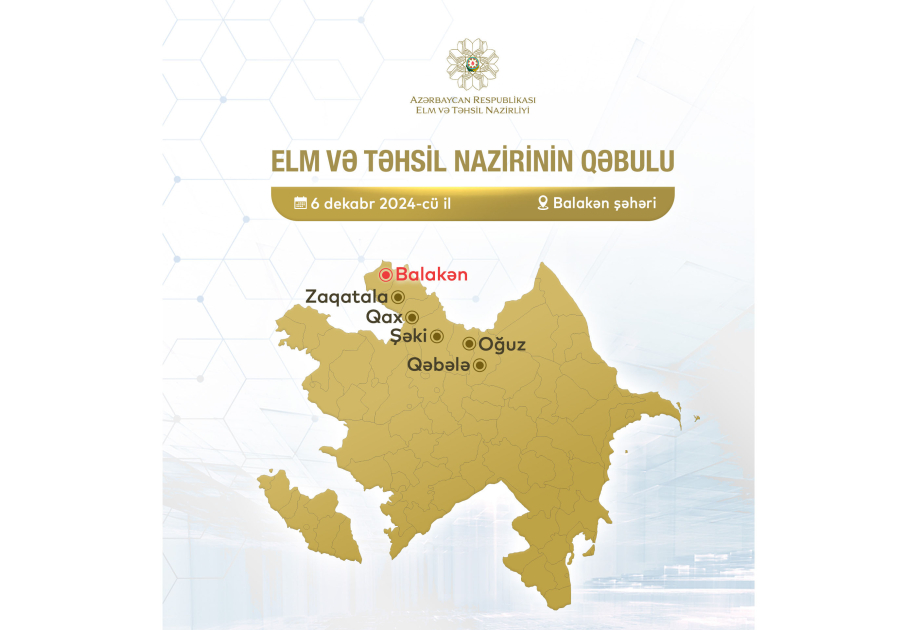 Elm və təhsil naziri Emin Əmrullayev dekabrın 6-da Balakən şəhərində vətəndaşların müraciətlərini dinləyəcək.