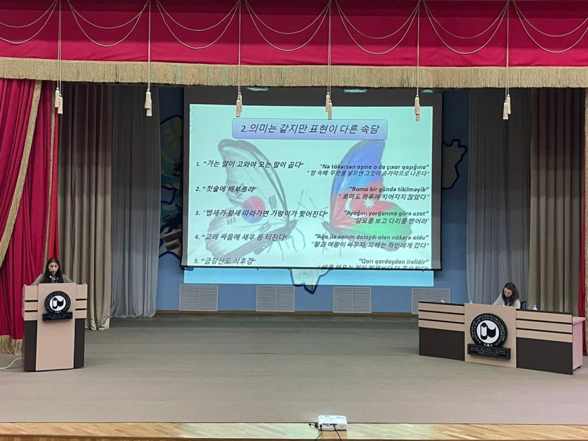 Bakı Dövlət Universitetinin (BDU) Şərqşünaslıq fakültəsinin Regionşünaslıq (Koreya üzrə) ixtisasının III kurs tələbələri Nərmin Zeynalova, Məryəm Abasova, Uzaq Şərq dilləri və ədəbiyyatı kafedrasının Koreya dili üzrə müəllimi, eyni zamanda Koreya Fondunun qonaq professoru Moon Eun Hyun Abılay xan adına Qazax Beynəlxalq Münasibətlər və Dünya Dilləri Universitetində keçirilən XIV Mərkəzi Asiya Koreyaşünaslıq Olimpiadası və MDB Koreyaşünas Gənc Tədqiqatçıların IX Konfransında iştirak ediblər.