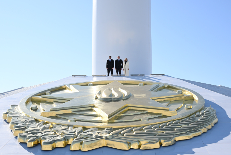 AZƏRTAC xəbər verir ki, dövlətimizin başçısı burada Azərbaycanın üçrəngli Bayrağını ucaldıb.