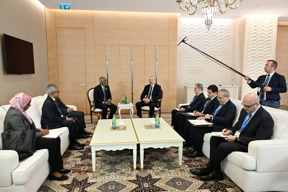 Azərbaycan Respublikasının Prezidenti İlham Əliyev noyabrın 14-də Maldiv Respublikasının Prezidenti Məhəmməd Muizzu ilə görüşüb.