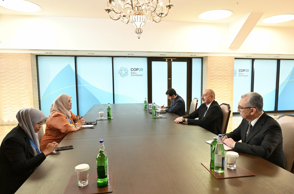 AZƏRTAC xəbər verir ki, Maimuna Mohd Şərif Prezident İlham Əliyevə COP29-da yerli icmalar statusunda Kuala Lumpur şəhərinin meri kimi çıxış etməsinə yaradılan imkana və COP29-da Azərbaycanın Sədrliyi yanında yaradılmış Məşvərət Şurasına daxil edilməsinə görə Prezident İlham Əliyevə minnətdarlığını bildirdi.